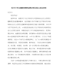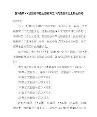 在X委第XX巡回指导组主题教育工作交流座谈会上的主持词同志们:今天,把我们XX单位的各位领导、同志们召集一起开一个主题教育工作交流座谈会,主要目的是深入学习贯彻习近平新时代中国特色社会主义思想,及时总结各单位经验做法,扎实推动主题教育工作走深走实。会前,我们参观了XXX企业文化馆,现在召开主题教育工作交流座谈会。此次会议,我们专门向X委主题教育办进行了请示,今天X委主题教育办XXX同志亲临会议指导,让我们以热烈的掌声表示欢迎!参加今天会议领导有:X委第XXX巡回指导组组长XX同志;XX集团党委书记、董事长XXX同志,党委副书记XXX同志;XX集团党委副书记XXX同志;XX集团党委副书记XXX同...