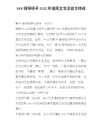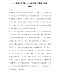 XXX集团公司党委2022年度领导班子民主生活会主持词
