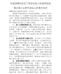 在县保障房安居工程资金投入和使用绩效情况审计业务布置会上的表态发言尊敬的审计组的各位领导,同志们:根据审计署和省审计厅的安排和要求,市审计局派出审计组对我县2022年度棚户区改造和公租房的投资、建设、分配、使用和后续管理等情况进行审计。在此,我代表县委、政府对审计组的到来表示热烈的欢迎!下面,我就配合审计组做好这次审计工作做以下表态。一、进一步提高思想认识。各有关部门单位要充分认识本次审计工作的重要性,主要领导要站在讲政治、讲大局的高度,本着对党、对人民、对事业负责的态度,提高认识,认真对待,紧紧围绕本次审计各项重点工作,成立迎接审计工作领导小组,全力以赴配合审计组开展对本单位的审计工作。二、...