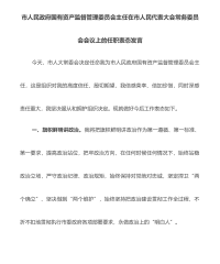 市人民政府国有资产监督管理委员会主任在市人民代表大会常务委员会会议上的任职表态发言今天,市人大常委会决定任命我为市人民政府国有资产监督管理委员会主任,这是组织对我的高度信任、殷切期望,我倍感荣幸、倍加珍惜,同时深感责任重大,我坚决服从和拥护组织决定。现就做好今后工作表态如下。一、旗帜鲜明讲政治。我将把旗帜鲜明讲政治作为第一遵循、第一标准、第一要求,提高政治站位,把牢政治方向,在任何时候任何情况下,始终站稳政治立场,严守政治纪律、政治规矩,始终保持对党绝对忠诚,坚定捍卫“两个确立”、坚决做到“两个维护”,始终坚持把政治建设贯彻工作全过程,不折不扣地贯彻执行市委政府各项部署要求,永做政治上的“明白...