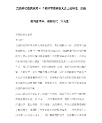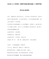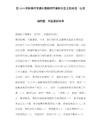 党委书记在庆祝第40个教师节暨表彰大会上的讲话:弘扬教育家精神,做新时代“大先生”尊敬的各位老师:下午好!当金秋的微风带来果实成熟的芬芳,我们相聚在一起,致敬平凡更致敬伟大。在第40个教师节即将来临之际,我谨代表学校向全体教职员工致以亲切问候和崇高敬意!向为教育奉献大半辈子,光荣退休的老师致以衷心感谢!向即将获得表彰的先进个人致以热烈祝贺!今天,我们在座的老师,有的从教刚好40年,有的迎来的是从教后第一个教师节。因为对教育事业的热爱,我们共同将教师节视为了人生岁月里最重要的时间节点,即便我们每天都在经历教育的日常,每天都在见证教育的力量,但惟有今天,教师这个称号所带来的荣光显得格外的闪耀。从自...
