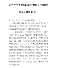 (8篇)关于2023年中秋节国庆节廉洁自律提醒廉洁过节通知