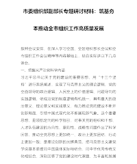 市委组织部副部长专题研讨材料:筑基夯本 推动全市组织工作高质量发展