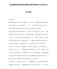 在区委第四巡察组对区档案馆开展常规巡察工作动员会上的主持词现在开会。根据区委巡察工作的统一部署,从今天起,区委第四巡察组将对我单位开展为期45天的巡察工作。在此,我代表统计局和全体干部,对区委第四巡察组的到来表示热烈的欢迎和衷心的感谢!按照区委第四巡察组的要求,今天我们召开巡察工作动员会,主要任务是对这次巡察工作进行全面安排部署,动员区统计局领导干部、各科室,全力配合巡察组开展好各项工作。结合此次巡察,区委组织部将开展选人用人专项检查工作,区委宣传部将针对意识形态工作进行专项检查,区委编办将针对人员编制工作进行专项检查。出席今天会议的有:区委巡察工作领导小组成员、区纪委副书记、监委副主任XX同...