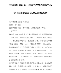 在镇康县2023-2024年度大学生志愿服务西部计划志愿者出征仪式上的主持词