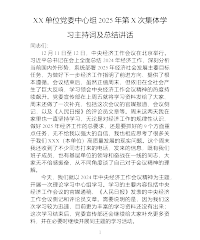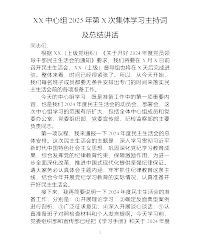 XX单位党委中心组2025年第X次集体学习主持词及总结讲话