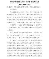 政银企对接洽谈会主持词、讲话稿、签约情况汇报政银企座谈会主持词各位领导、各位金融机构的负责同志、各位企业家朋友们:大家下午好!在这硕果累累的金秋时节,今天,我们在这里欢聚一堂,隆重举行xx政银企合作座谈会,主要目的是搭建政银企沟通对接平台,聚焦民营经济,积极探索政银企沟通合作机制,努力为促进我市民营经济发展高质量发展,加强沟通合作,共谋发展大计,实现互利共赢。在此,我谨代表三家主办方——市工信局、市金融办和市工商联对与会市、县政府有关领导和金融部门负责人及企业家代表表示热烈的欢迎和衷心的感谢!首先,请允许我介绍出席今天会议的市、县领导有。还有,将近有百家规模大小不一、行业领域较多的民营企业主参...