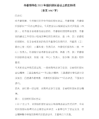 市委领导在2023年组织部长会议上的主持词(全文5467字)同志们:经市委同意,今天我们召开全市组织部长会议。市委常委、市委组织部部长***同志出席会议。今天的会议以视频会议形式开到县(市、区)。在市级主会场参加会议的有,市委组织部部务会成员,市委党的建设工作领导小组成员单位的负责同志,县(市、区)党委组织部部长,在主会场发言的有关市直单位负责同志,市直党(工)委办公室(组织、人事科室)负责同志,市委组织部各科(室、中心)负责人。在县级分会场参加会议的有,各县(市、区)党委组织部部务会成员、各股(室、中心)负责人、各乡镇(街道)组织委员;今天的会议共有四项议程。一是由我传达学习全国、全省组织部...