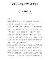 某镇2022年度党员领导干部民主生活会主持词(全文2886字)